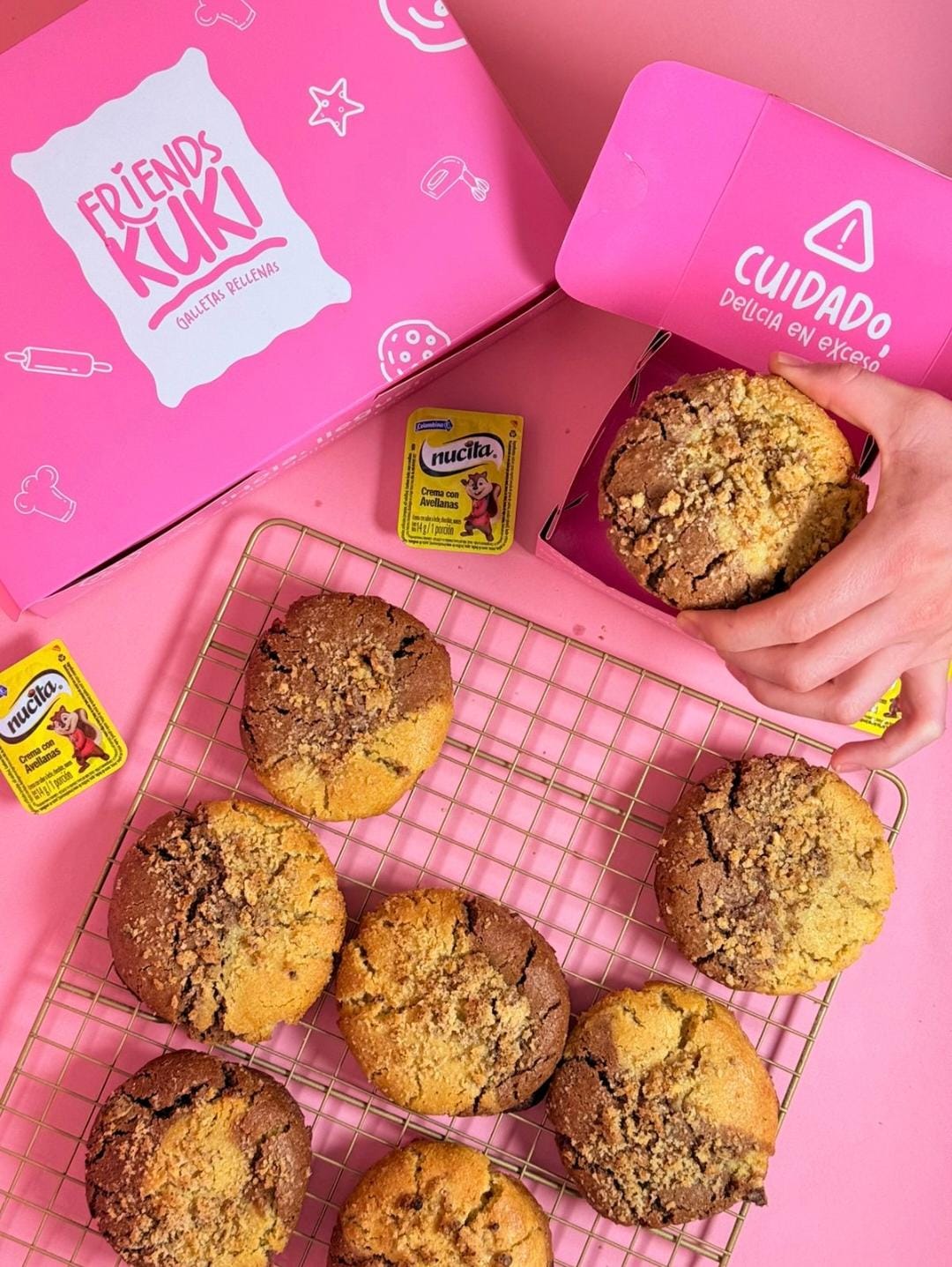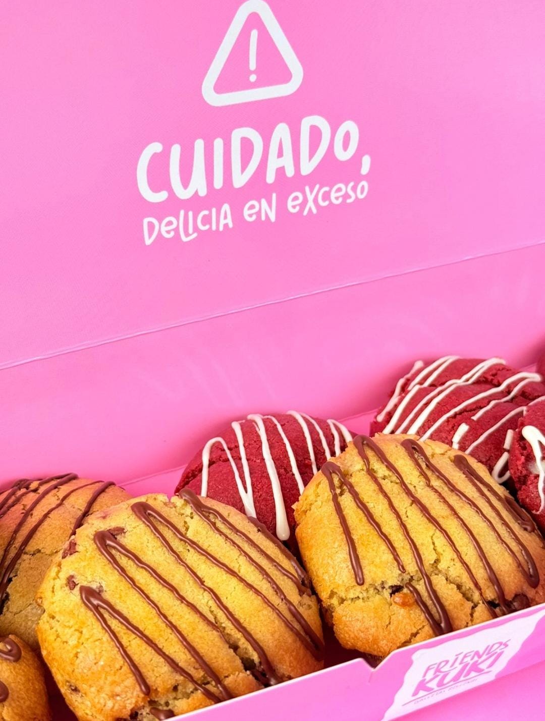 Caja de Sonrisas BabyKukis Elige 3 mini galletas con rellenos que enamoran: Nutella, Red Velvet, Leche Klim o Maracuyá. ¡Crea tu combinación favorita!”